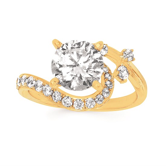 Engagement Ring Forever ElegantĀ® 1/3 Ctw. Diamond Semi Mount shown with 2 Ct. Round Center Diamond in 14K Gold
